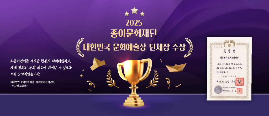 - 재단법인 종이문화재단·세계종이접기연합 대한민국 문화예술상 단체상 수상 2025-11-10